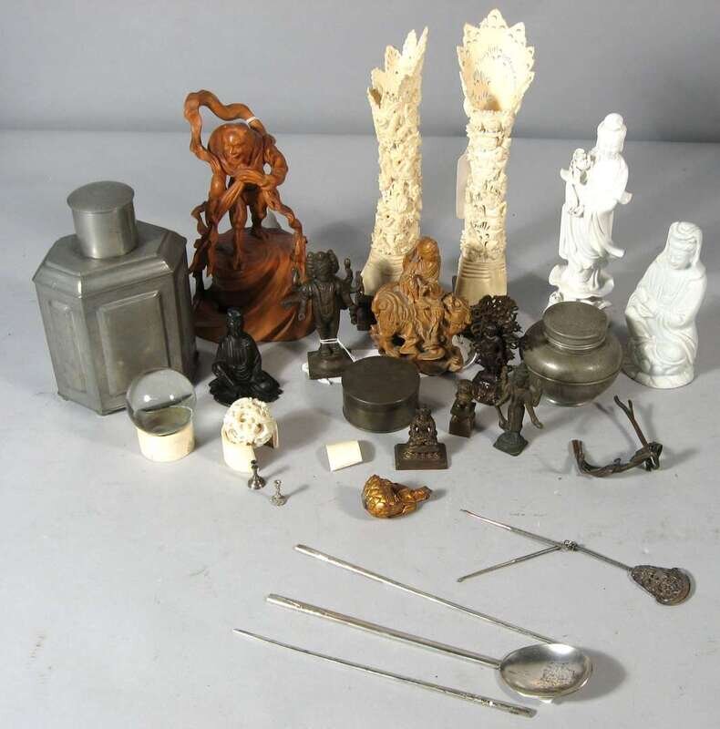 Including Japanese crystal sphere and boxwood Oni grouping.