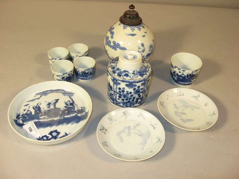 Chinese blue and white vase, pair of dishs, tea caddy and tea set mostly 19th century