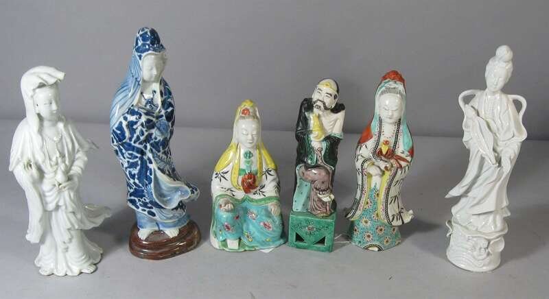 Comprise of famille rose and blanc-de chine Quanyins and Lohan models.