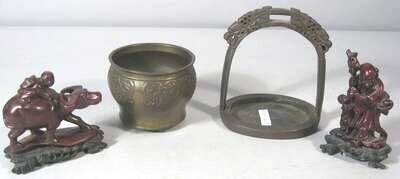 Two Chinese stone groupings, bronze vase and stirrup mostly late 19th century