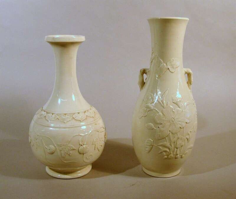 Two Chinese white glazed and applied porcelain vases late qing dynasty
