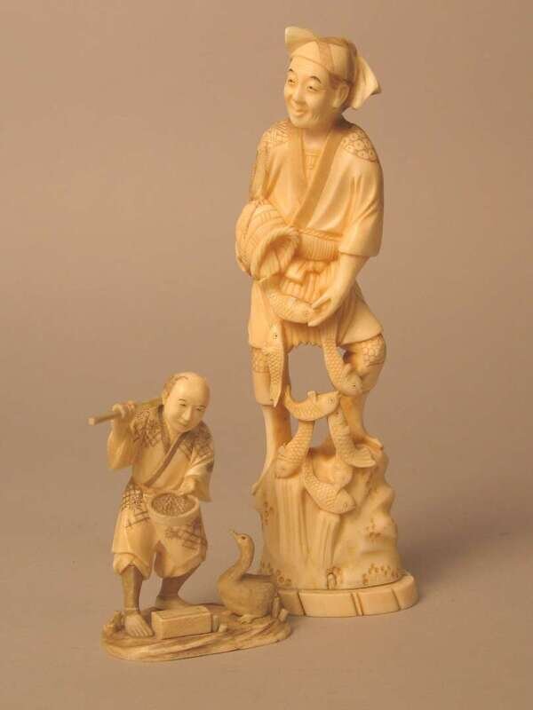Three piece bone carved figural okimono group japan, 19th/20th century