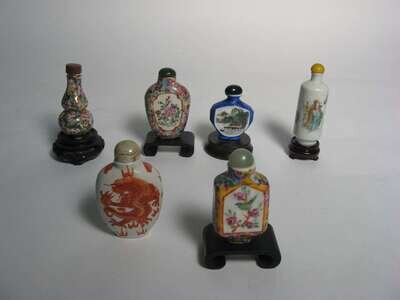 Six porcelain snuff bottles