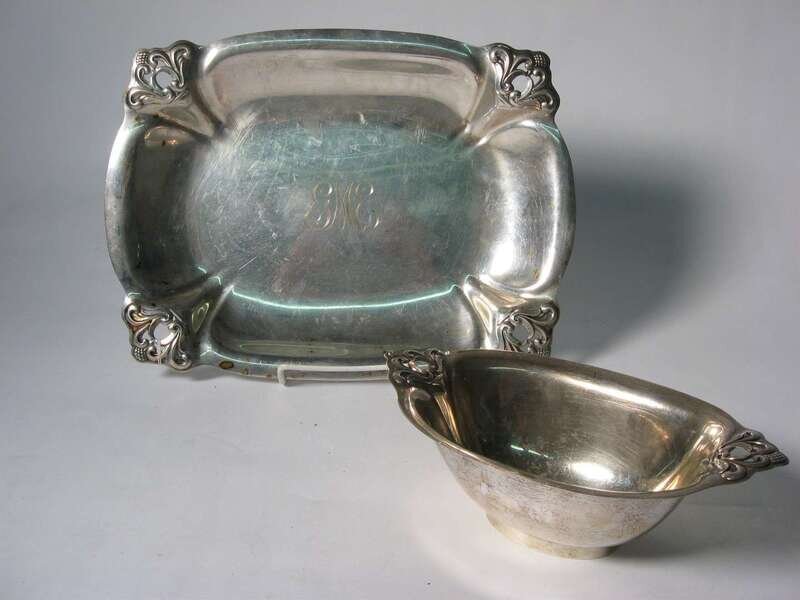 Sterling silver open vegetable stand and matching sauce boat international silver co., 20th century