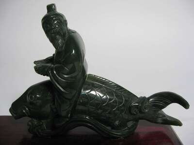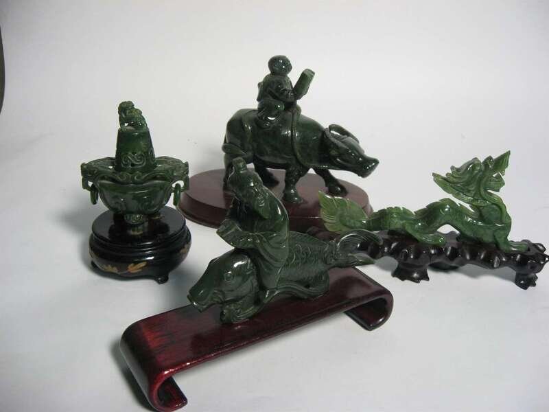 Including dragon, censer on stand, figures riding a carp a water buffalo and carp, 4 pieces.