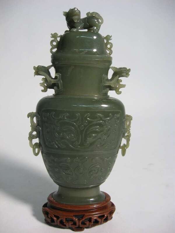 Carved jade covered vase 20th century