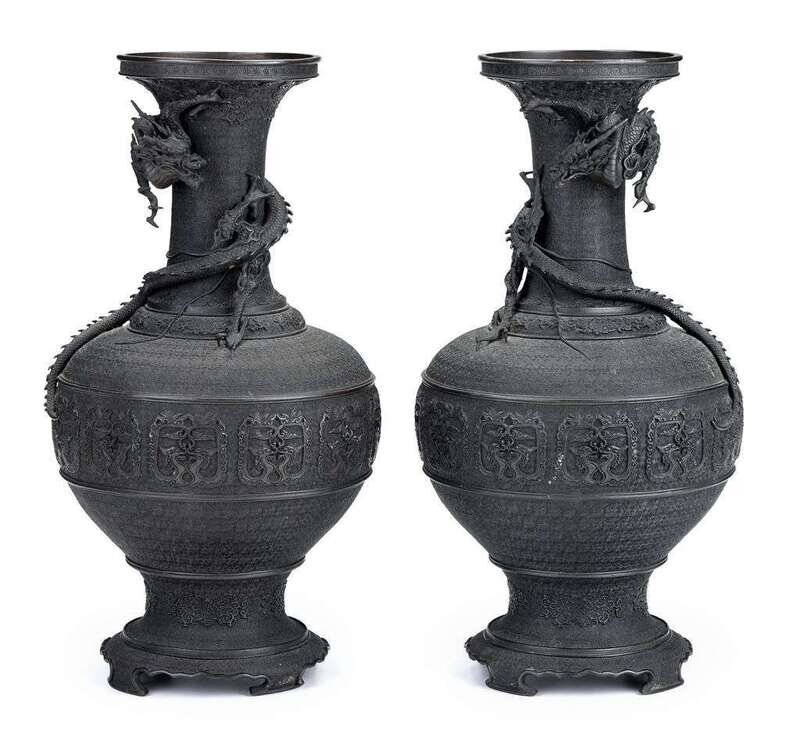 Large pair of Japanese bronze vases 19/20th century