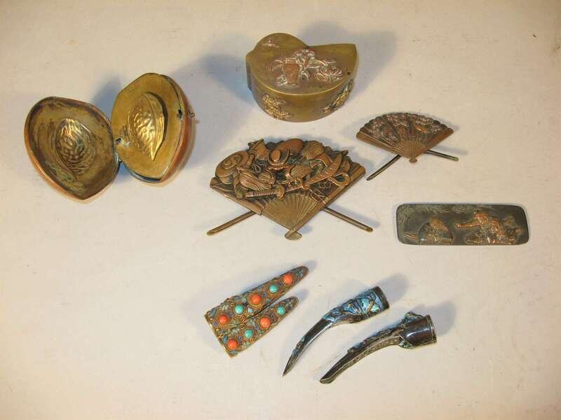 Eight Japanese and Thai metal fittings