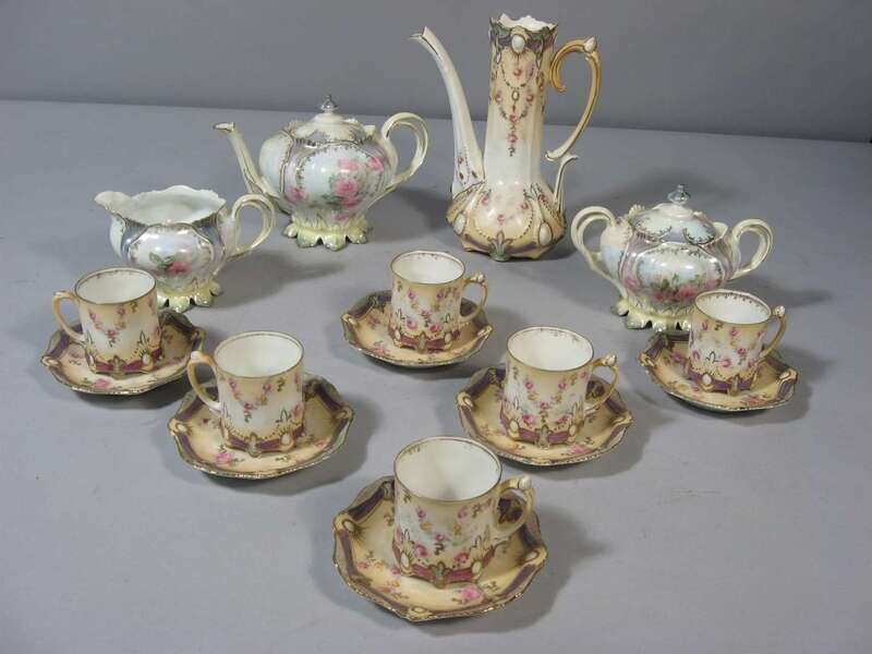 R. S. Prussia 'jeweled' porcelain coffee service circa 1900