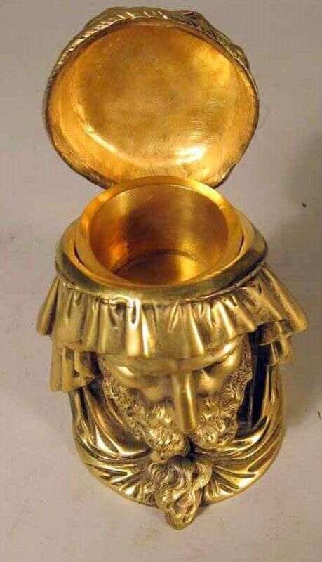 Gilt patina, modeled as the bust of an Arab man.