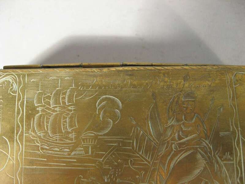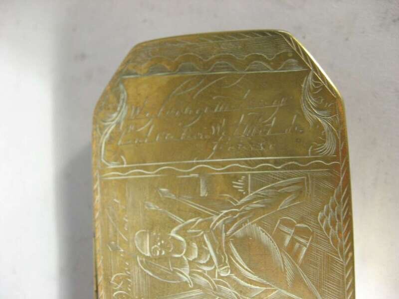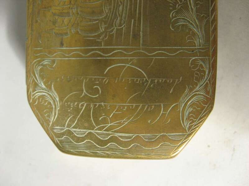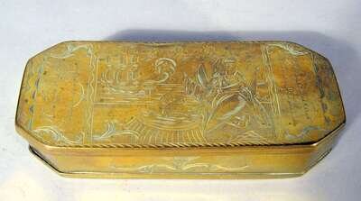 Of octagonal form with an engraved scene of a ship at sea and a classical figure holding a spear, inscribed.