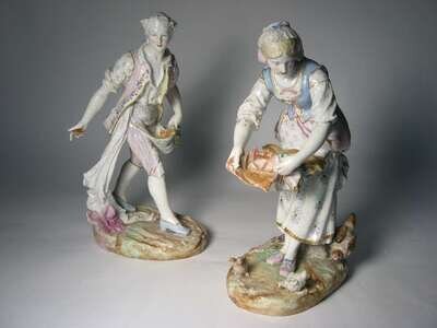 Continental porcelain figures of man and woman 19th / 20th century