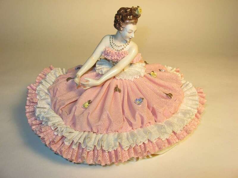 Two German Dresden style porcelain figurines 20th century