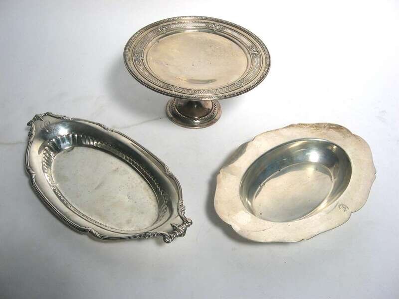 Plain oval serpentine design, together with a sterling silver roll tray by Reed & Barton and an openwork sterling silver mint compote, 3 pieces.