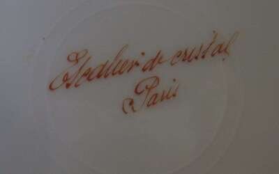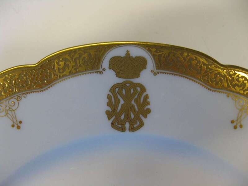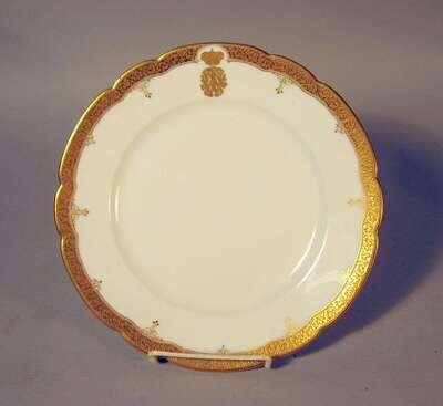 Scalloped gilt etched border with an Imperial crown and monogram, Escalier de Cristal, Paris retailer's mark on reverse.