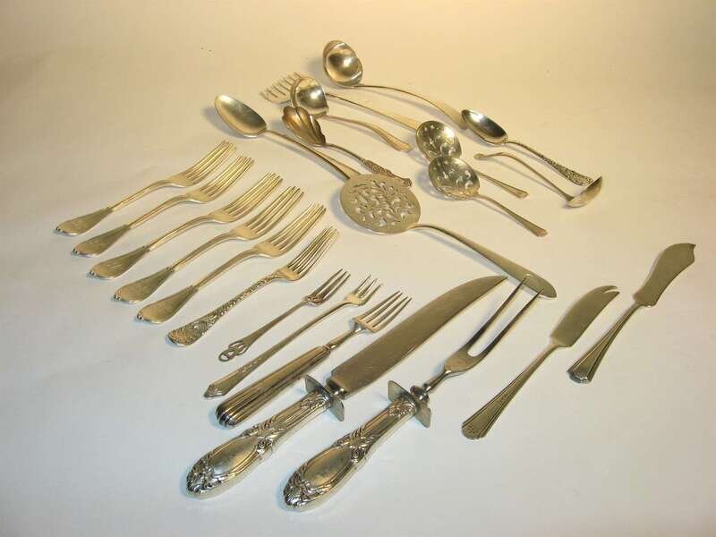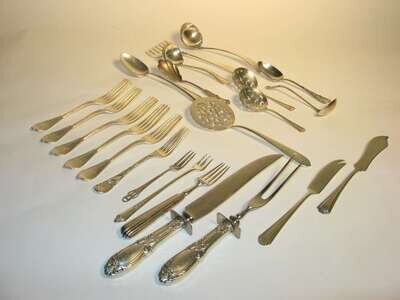 Including luncheon forks, teaspoons, flat butter spreaders, small serving pieces and steak carving set, 24 pieces.