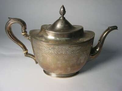Oval sterling silver tea pot by International mid 20th century