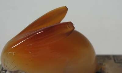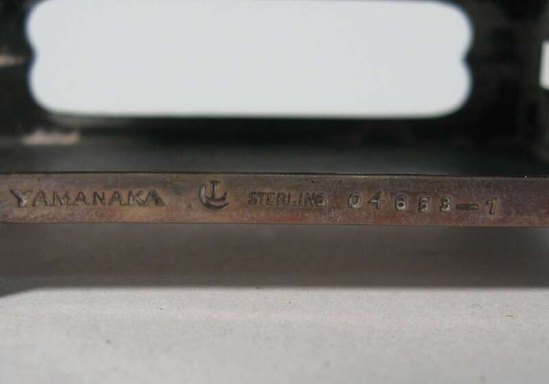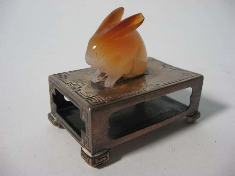 With a seated agate stone rabbit above the rectangular incised top case resting on square raised feet. Stamped Yamanaka Sterling on base.
