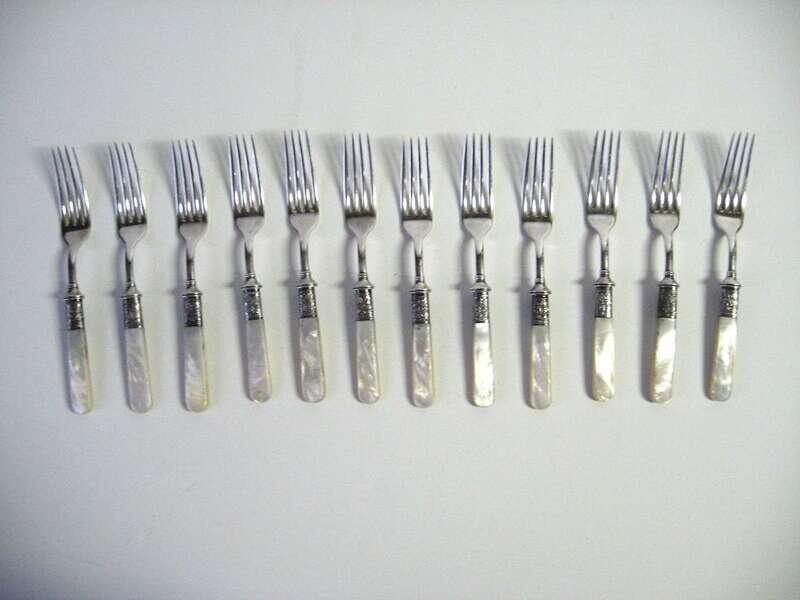Twelve mother-of-pearl handle luncheon forks 19th/20th century