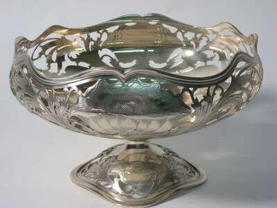 Sterling silver Art nouveau style reticulated fruit bowl Gorham & Co. mid-20th century