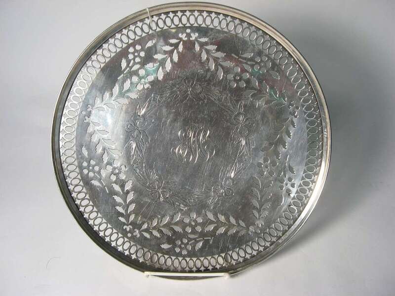 Circular sterling silver openwork cake tray early 20th century