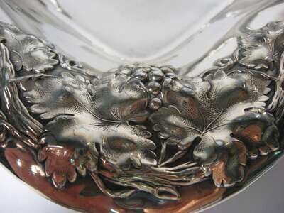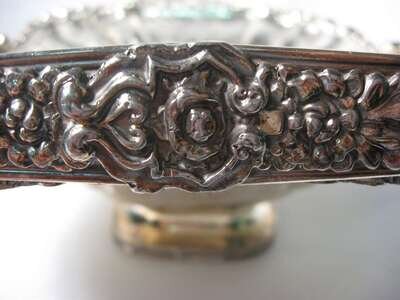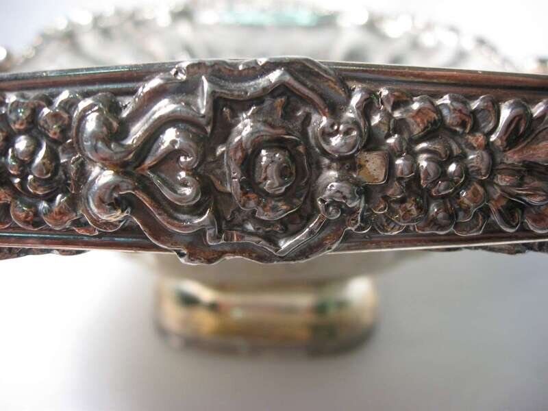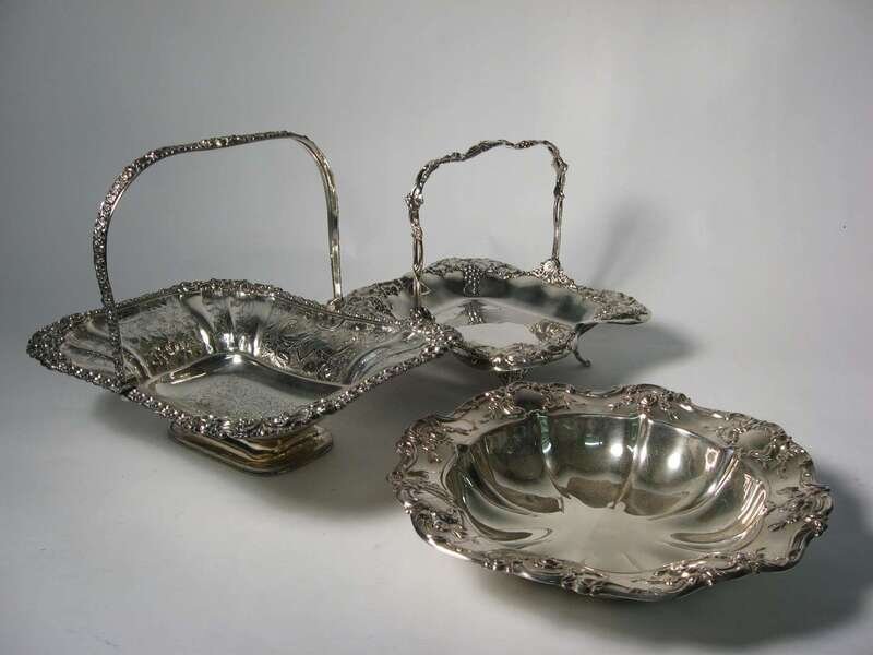 Heavily chased swing handle and border, repousse paneled sides, together with a smaller basket and a circular serpentine fruit bowl, 3 pieces.