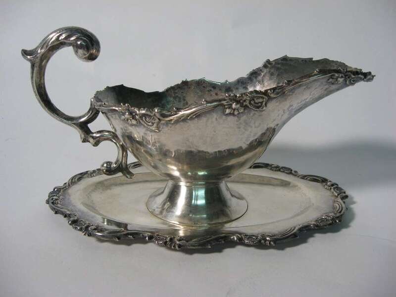 Peruvian "sterling silver" sauce boat with attached tray 20th century