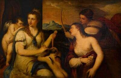 AFTER TIZIANO VECELLIO CALLED TITIAN (ITALIAN 1490-1576) "VENUS BLINDFOLDING CUPID"