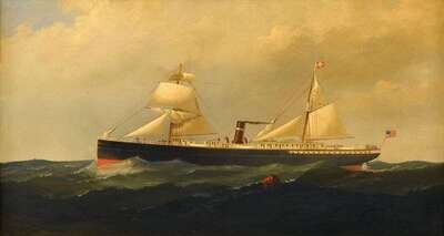 ALEXANDER CHARLES STUART (AMERICAN 1831-1898) "STEAM SAIL SHIP OFF THE JERSEY COAST"