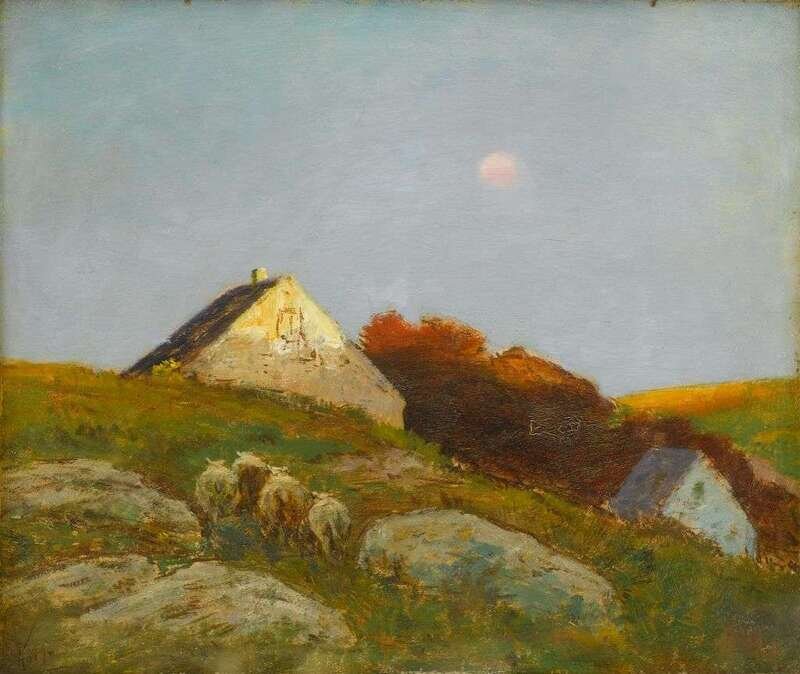 FREDERICK WILLIAM KOST (AMERICAN 1861-1923) "HILLTOP WITH SHEEP"