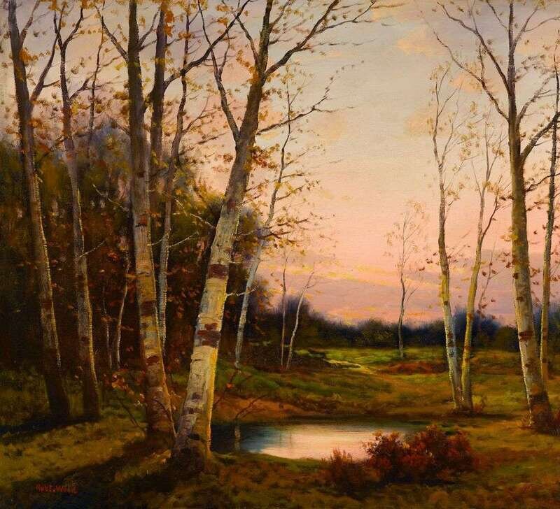 ROBERT WOOD (AMERICAN 1889-1979) SILVER BIRCHES, SUNSET