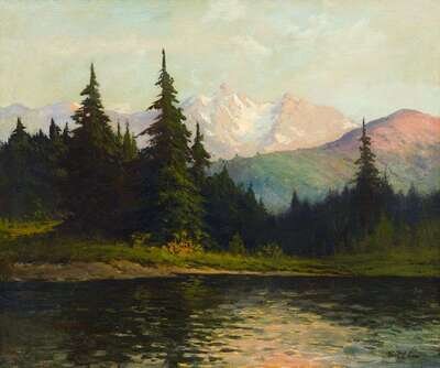 ROBERT WOOD (AMERICAN 1889-1979) PINE TREES BY A LAKE
