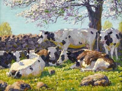 EDWARD CHARLES VOLKERT (AMERICAN 1871-1935) CATTLE RESTING IN THE SHADE OF A CHERRY TREE