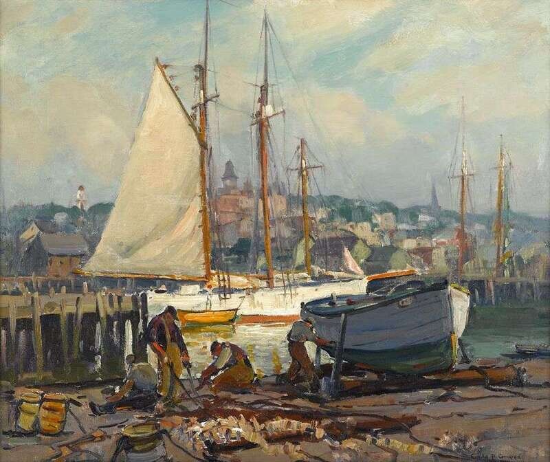 EMILE ALBERT GRUPPE (AMERICAN 1896-1978) "THE LIBERTY AT DOCK AT GLOUCESTER"
