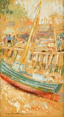 LEON SCHULMAN GASPARD (RUSSIAN/AMERICAN 1882-1964) "PROVINCETOWN #5 - BOAT IN HARBOR"