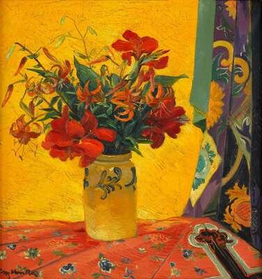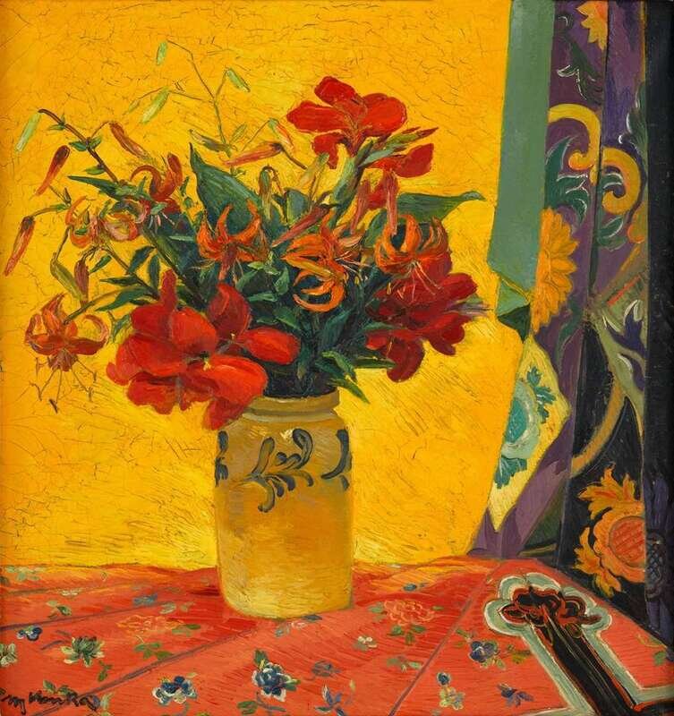 MAXIMILIAN VANKA (AMERICAN 1890-1963) STILL LIFE OF FLOWERS AGAINST A YELLOW DRAPE