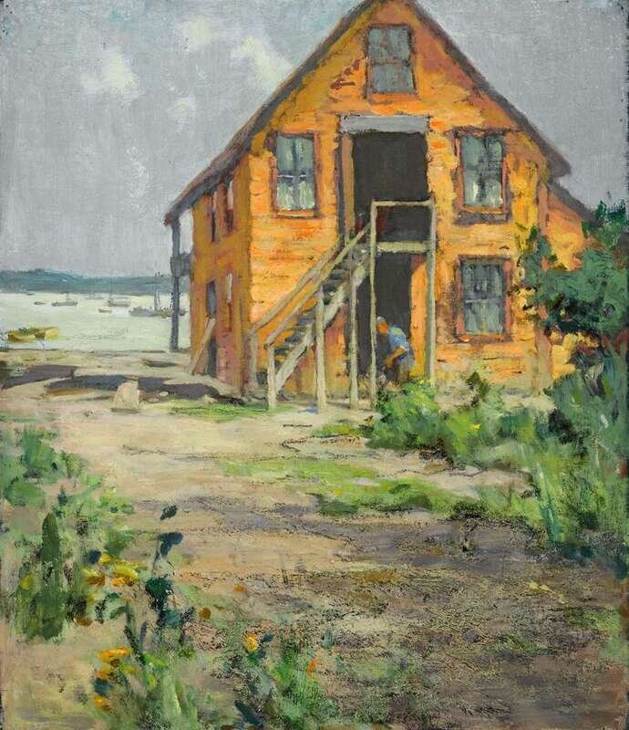 HENRY BAYLEY SNELL (AMERICAN 1858-1943) BY THE BOATHOUSE