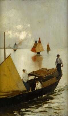RUBENS SANTORO (ITALIAN 1859-1942) ON THE VENETIAN LAGOON