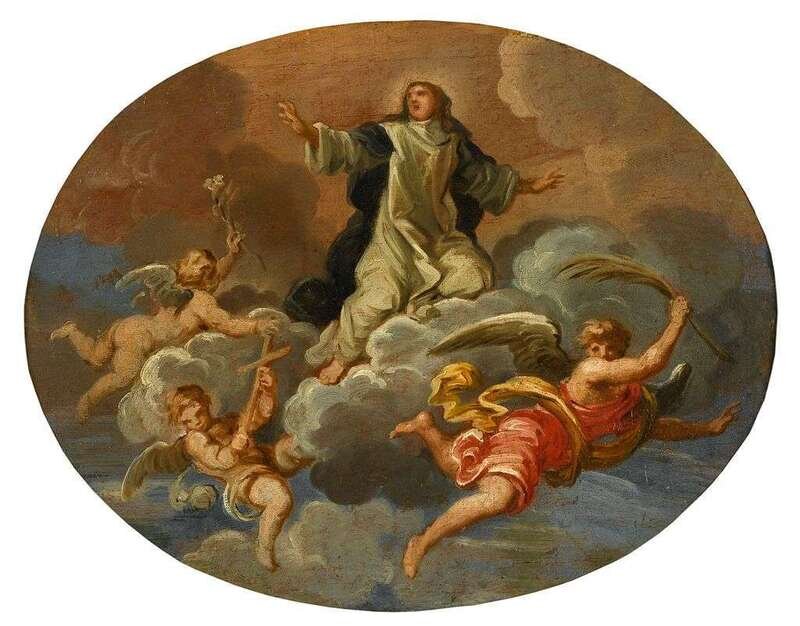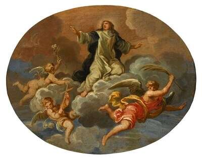 FOLLOWER OF LOUIS GALLOCHE (FRENCH 1670-1761) "ASSUMPTION OF A FEMALE SAINT"