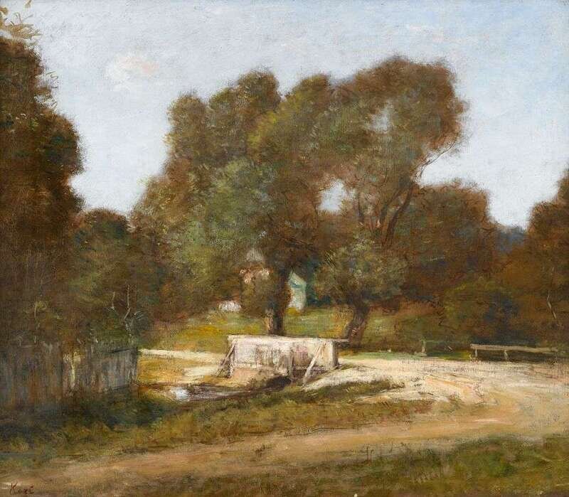 FREDERICK WILLIAM KOST (AMERICAN 1861-1923) SUNLIT BRIDGE IN A RURAL LANDSCAPE