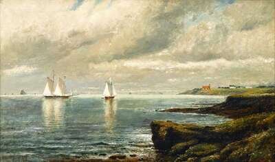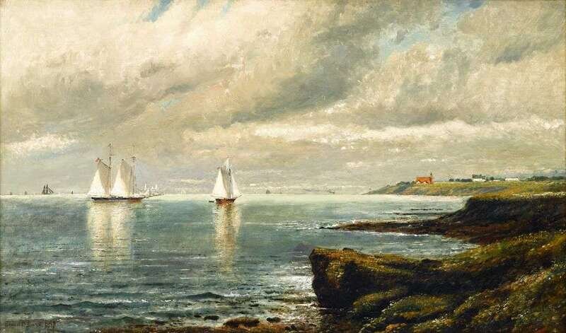 EDMUND DARCH LEWIS (AMERICAN 1835-1910) "YACHTS OFF OCHRE POINT, NEWPORT"