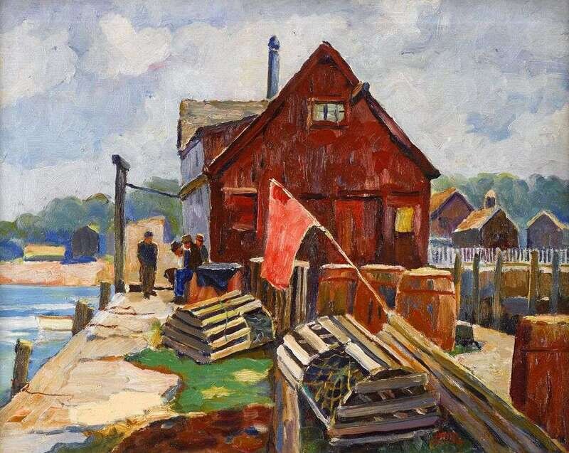 JOSHUA TOLFORD (AMERICAN 1909-1985) "CONVERSATION ON A WHARF"