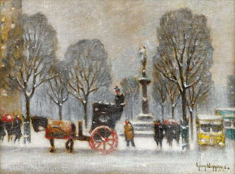 GUY CARLETON WIGGINS (AMERICAN 1883-1962) "THE PLAZA IN WINTER, 1959"