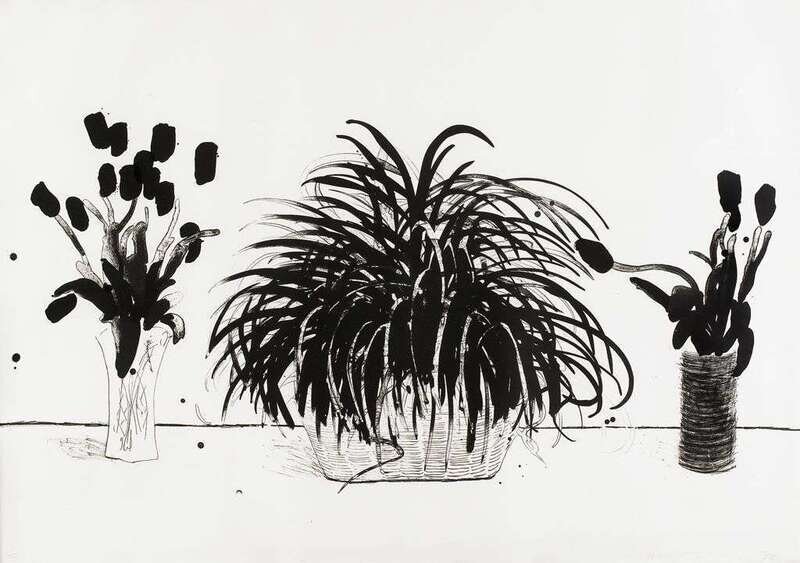 DAVID HOCKNEY (BRITISH B. 1937) "TWO VASES OF CUT FLOWERS AND A LIRIOPE PLANT"