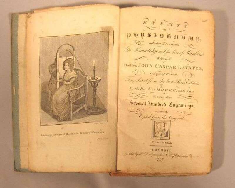 Lavater, John Caspar. Essays on Physiognomy. London: H.D. Symonds, 1797. 8vo, orig. bds., paper spine labels; moderate wear, some dust soiling, labels very worn. Numerous engraved plates. Occasional internal spotting. Untrimmed.