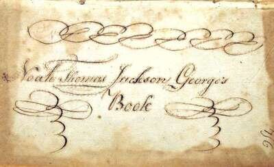 Morse, Jedidiah; Parish, Elijah. A Compendious History of New England. Newburyport: Thomas & Whipple, 1809. "Second Edition." 12mo, contemp. sheep, black morocco spine label; scuffed, joints & extremities rubbed. Occasional minor internal spotting. Contemp. decorated ink manuscript "bookplate" of Noah Thomas Jackson George on front free endpaper recto. Subtle contemp. ink embellishment surrounding the "A" at head of title. Some darkening to edges of endpapers.