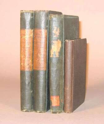 Irving, Washington - American Western Travel: A Tour on The Prairies. Philadelphia: Carey, Lea & Blanchard, 1835. 1st Am. ed. The Crayon Miscellany No 8. 12mo, orig. green cloth; scuffed, slightly cocked, paper spine label virtually worn away. New endpapers, gutters of Miscellany title verso & advert. reinforced, some staining, foxing & washed? Ink annotations on Miscellany title page, light to moderate foxing. Pub cat. at back. BAL 10140; Howes I-86; Wagner-Camp 56:2. * Eine auf den Prairien. Frankfurt am Main, 1835. 16mo, contemp. bds. Frontis. portrait. Scattered light foxing. Label residue on paste-downs. Wagner-Camp 56:9. * The Rocky Mountains: or Scenes, Incidents and Adventures in The Far West. Philadelphia: Carey, Lea & Blanchard, 1837. 1st Am. ed. 2 vols. 12mo, orig. green cloth, paper spine labels; edge wear, moderately scuffed. With 2 fold. maps - heavily repaired on versos with old cellotape, some browning to body of maps, moderate foxing throughout. With fly leaves. BAL 10151; Howes I-85; Wagner-Camp 67:3. Rough but complete copies, sold with all faults.