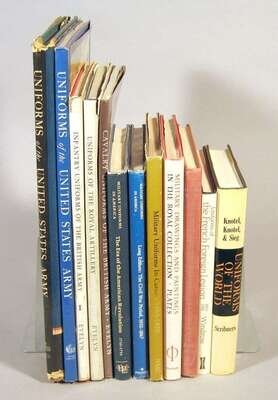 Military Uniforms & C: Miller, A.E.; Dawnay, N.P. Military Drawings and Paintings in The Collection of Her Majesty The Queen. (London): Phaidon, (1970). 2nd ed. Volume One. Plates. 4to, orig. gilt-lettered cloth; light wear, d/j (minor edge wear). Color & b/w plates. * Windrow, Martin. Uniforms of The French Foreign Legion, 1831-1981. Poole, Dorset: Blandford Press, (1981). 1st ed. 4to, orig. cloth, d/j. Color plates, other illus. * Smitherman, P.H. Infantry Uniforms of The British Army. First Series, 1660-1790. London: Hugh Evelyn, (1965). 1st ed. Folio, orig. cloth, gilt; light wear, d/j (some creasing, chipping & small tears at edges). With 20 color plates. * _ _. Uniforms of The Royal Artillery, 1716-1966. London: H. Evelyn, (1966). 1st ed. Folio, orig. cloth, gilt; light wear, d/j (some edge wear, minor dust soiling). With 20 color plates. * _ _. Cavalry Uniforms of The British Army. London: H. Evelyn, (1962). 1st ed. Folio, orig. pictorial wrappers over flexible bds.; light wear. With 20 color plates. * Elting, John R., editor. Military Uniforms in America: The Era of The American Revolution, 1755-1795. San Rafael: Presidio, (1975). 2nd ptg. 4to, orig. silver-lettered & pictorial cloth, d/j (some edge wear). Color plates. * _ _. Military Uniforms in America: Long Endure: The Civil War Period, 1852-1867. Novato: Presidio, 1982. 1st ed. 4to, orig. silver-lettered & decorated cloth, d/j (some edge wear). Color plates. * Todd, Frederick P. American Military Equipage, 1851-1872. Volume III. Westbrook, Conn.: The Company of Military Historians, (1978). 4to, orig. cloth; light wear. Illus. * (Ogden, H.A., illustrator.) Nelson, Henry Loomis. Uniforms of The United States Army. New York: T. Yoseloff, (1959). [First Series.] Folio, orig. silver pictorial buckram; light wear, d/j (creased & chipped). With 44 color plates. * (_ _.) _ _. The Second Series of the preceding. New York: T. Yoseloff, (1960). Folio, orig. pictorial cloth, d/j. Light wear. Frontis. + 44 color plates. * Knotel, Herbert, Jr.; Sieg, Herbert, revised by. Uniforms of The World... 1700-1937. New York: Scribner's, (1980). 1st ed. thus. 4to, orig. cloth, d/j. Illus. minor wear. * Summers, Jack L.; Chartrand, Rene. Military Uniforms in Canada, 1665-1970. (Ottawa: National Museums of Canada), (1981). 4to, orig. cloth, d/j 9edge wear). Color plates.
