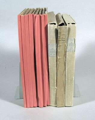 French Military History & Costume: Thoumas, General. Les Anciennes Armees Francaises: Exposition Retrospective Militaire de Ministere de la Guerre en 1889. [Paris]: Libraire Artistique, 1890. 8 portfolios, orig. color pictorial bds., rebacked; edge wear, scuffed. 15 sections in 8 parts. Photogravure plates & text illus. Internally generally clean. Presumed complete. * Large, Hector. Le Costume Militaire Francais. Paris, 1965, [ca. 1935]. 3 portfolios: "Des Celtes a la Revolution." Paris: Edimex, (1965). #98/500. 4 folio sections in orig. wrappers within orig. flexible cloth portfolio. With 80 color plates; "Le Costume Militaire Francais de 1789 a 1848." Paris: Edimex, (1965). #319/500. 4 folio sections in orig. wrappers within orig. flexible cloth portfolio. With 100 color plates. Erratum; "Le Costume Militaire a Travers les Ages" [1848-1935]. Paris: Aux Editions Arc-en-Cill, [ca. 1935]. 1/3000. Orig. bds. portfolio. 105 plates. Wear to portfolios. Internally clean. Text & plates loose as issued. Complete but married set.