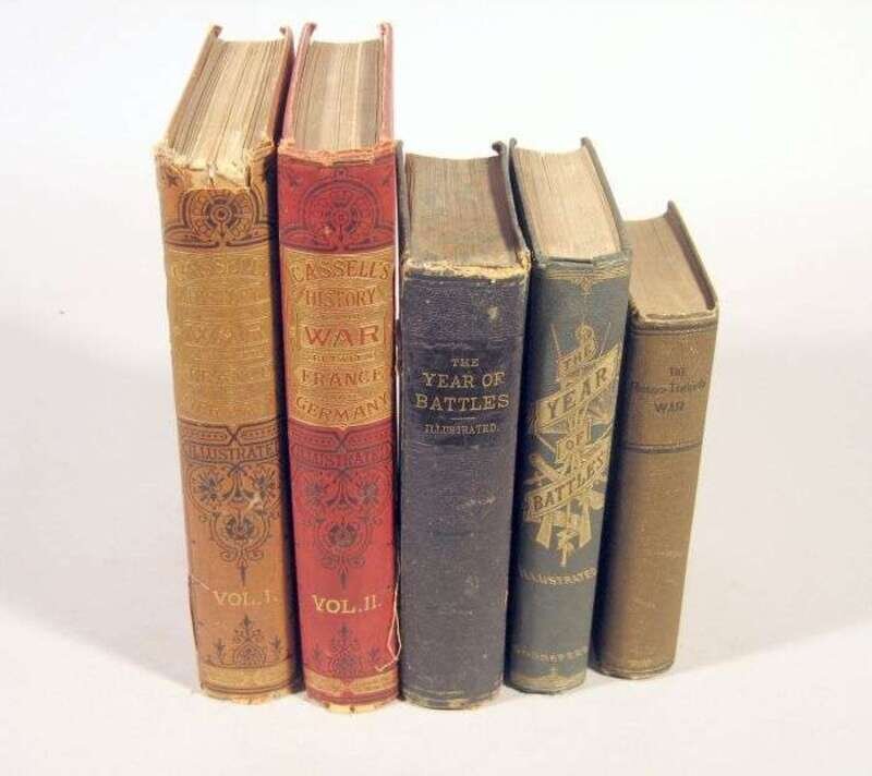 Military History - The Franco-Prussian & other 19th-Century European Conflicts: Brockett, L.P. The Year of Battles; or The Franco-German War of 1870-71. New York: J.W. Goodspeed, 1871. 8vo, orig. green cloth, gilt-lettered & pictorial spine; light edge wear. Fold. map (cello-tape repairs on verso), wood-engraved full-page illus. & maps, plans. 404 pp. * Another issue of the preceding, New York: H.S. Goodspeed, 1871. 8vo, orig. black publisher's morocco, gilt-lettered spine; extremities rubbed. With full-page, illus., maps, plans. 642 pp. * Cassell's History of The War between France and Germany, 1870-1871. London, etc.: Cassell, [1871]. 2 vols. 4to, orig. gilt & black-stamped pictorial red cloth; some fading to covers, joints frayed, hinges starting to separate. Wood-engraved frontispieces, full-page & text illus. Internally clean. * Barnwell, R. Grant. The Russo-Turkish War. New York: International, (1877). 8vo, orig. pebbled brown cloth, black-lettered spine; some light wear to head & feet of spine. With full-page & text illus., maps. Contemp. pencil inscription on front free endpaper recto.